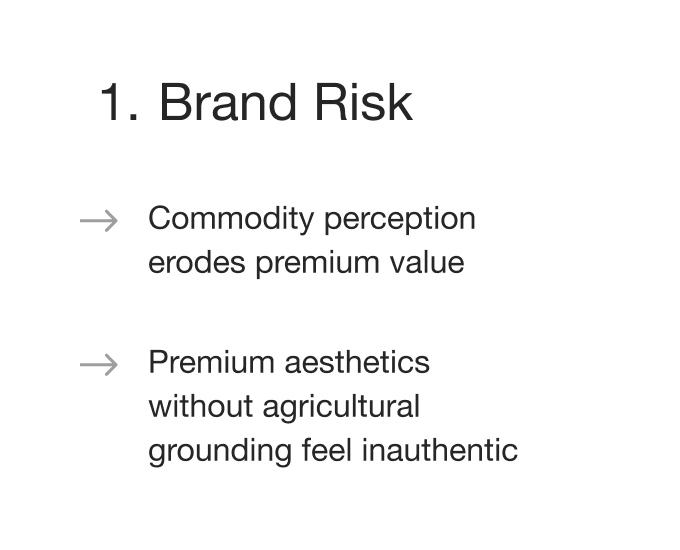 Instead of positioning as a luxury brand detached from agriculture, Aroco was positioned as a credible premium origin brand rooted in expertise and land stewardship.