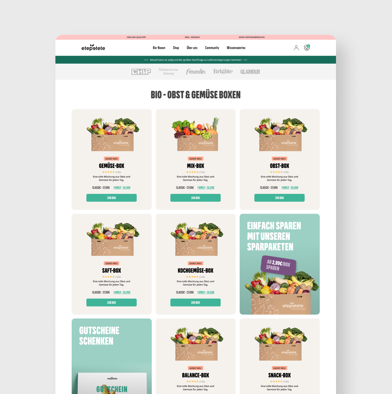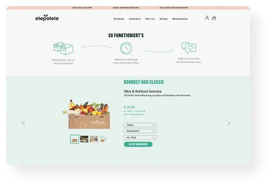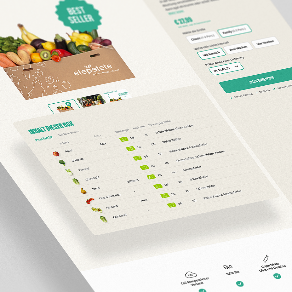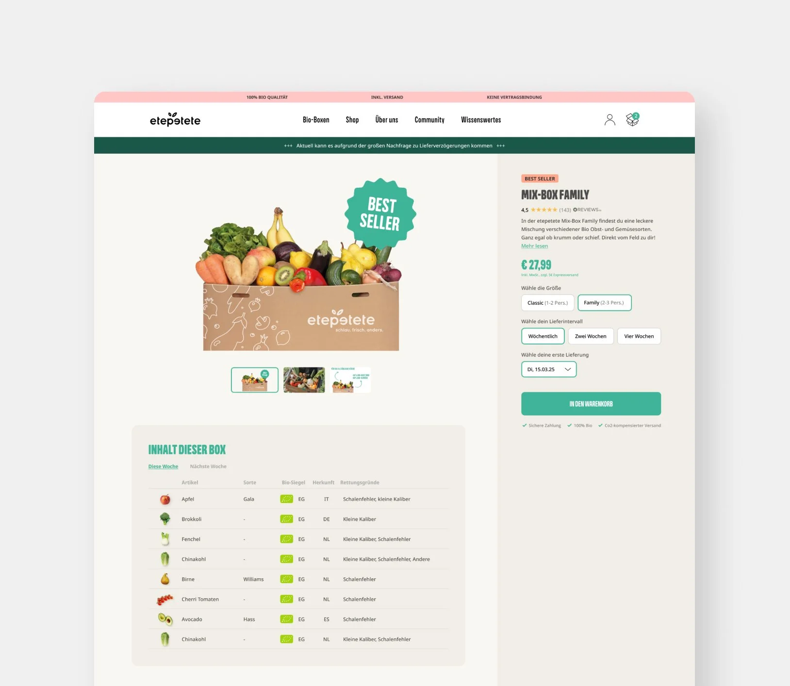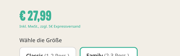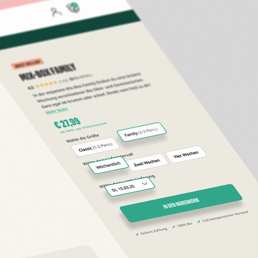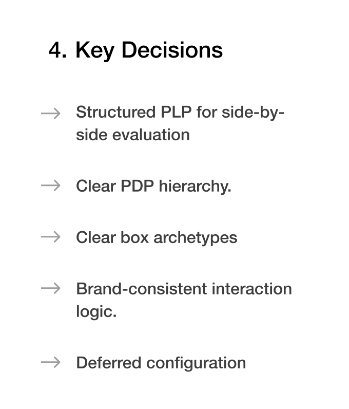 To enable faster decision-making, customers can preselect the appropriate product size before entering the box configurator. Available sizes and price differences are visible directly on the PLP, allowing users to toggle between options without visiting the product detail page. Customer reviews are also surfaced upfront to reinforce trust.