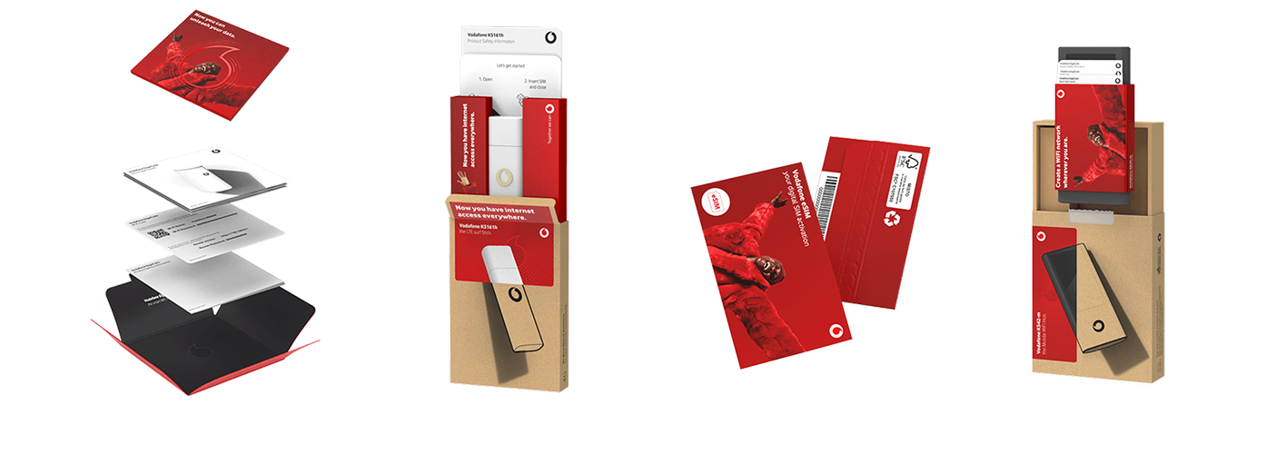 As part of a cross-functional design team, Vodafone Europe developed a new, more emotional brand language translating product characteristics into expressive verbal and visual cues. This project focused on translating that shared brand language into premium, production-ready product packaging with a considered unboxing experience.