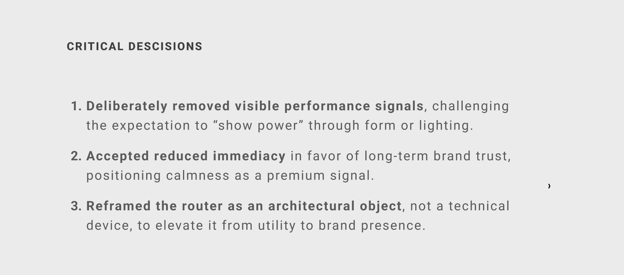 The task was to reverse this logic: repositioning a device meant to be hidden as a deliberate, visible object. The router needed to evolve from a technical afterthought into a calm, confident presence - one that communicates performance through restraint and earns its place in the home rather than demanding attention.